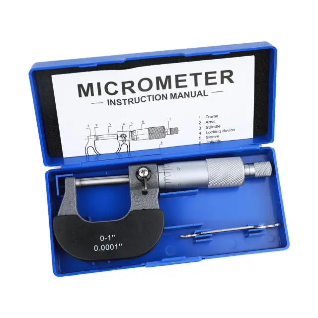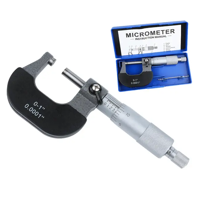 Visoka natančnost: Ta 0-1 palčni zunanji mikrometer ponuja izjemno natančnost za natančne meritve zunanjega premera. Mikrometer ima jasno označen tulec in cev z gradacijami za zanesljive odčitke do 0,001 palca.