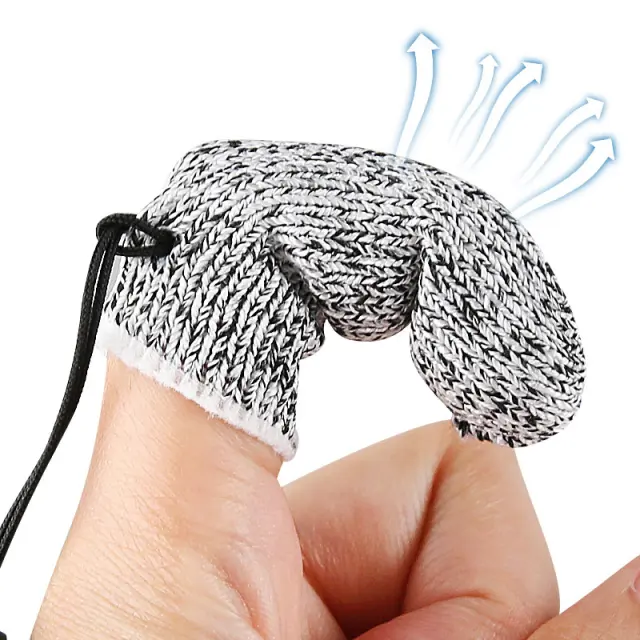 Zaščita pred urezninami: Ta prstni rokav zagotavlja zanesljivo plast odpornosti proti urezninam, ki ščiti vaš prst pred morebitnimi poškodbami med različnimi dejavnostmi. Mešanica najlona in poliestra ponuja ravnovesje med prožnostjo in močjo, kar zagotavlja vašo varnost brez ogrožanja spretnosti. Idealen za ribolov, ustvarjanje ali katero koli opravilo, kjer so vaši prsti izpostavljeni ostrim predmetom.