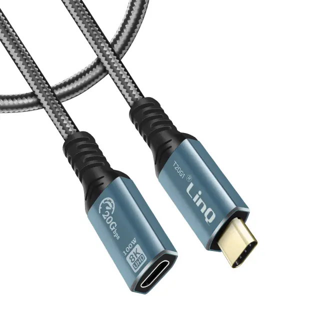 1,2 m USB-C podaljšek, 100 W polnjenje, locljivost 8K, prenos 20 Gbps - LinQ. Razširite doseg svojih obstojecih kablov USB-C s tem podaljškom USB-C podjetja LinQ. Vsestranski, podpira hitro polnjenje s 100 W Power Delivery, ponuja hitrost prenosa 20 Gbps in podpira video locljivost 8K. Optimalna dolžina 1,2 m.