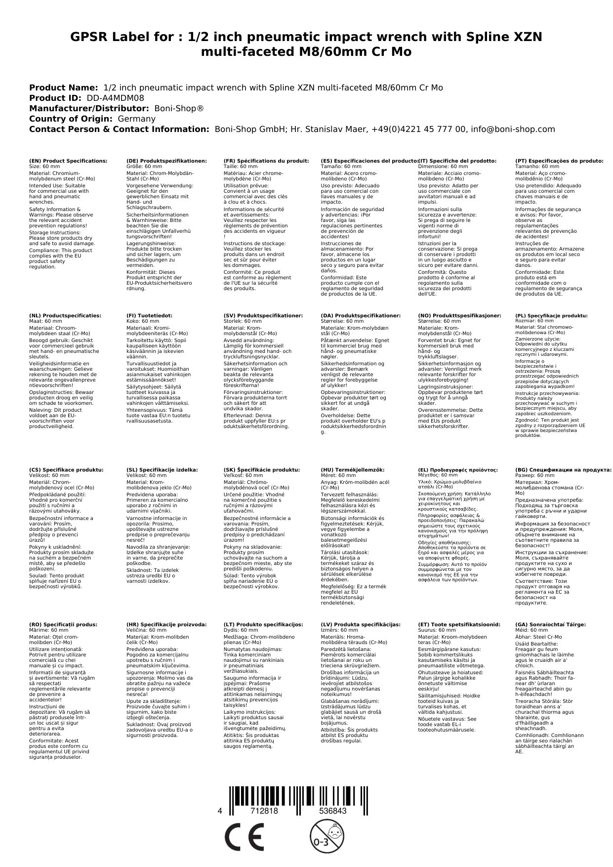 Robusten 1/2" nastavek za udarni vijačnik Spline XZN Vielzahn M8/60mm Cr Mo je narejen iz visokokakovostnega krom-molibden jekla (Cr Mo), ki zagotavlja dolgo življenjsko dobo in odpornost proti obrabi. Njegov edinstven Spline XZN Vielzahn profil poskrbi za natančno prileganje in preprečuje zdrsavanje, kar vam omogoča varno in učinkovito privijanje ter odvijanje vijakov M8.
