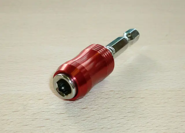 1/4 ”HEX držalo za nastavke z magnetnim nastavkom in dodatno ključavnico, ki drži nastavek (za odstranitev nastavka iz podaljška povlecite zunanji obroč navzdol).