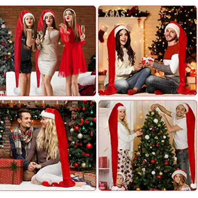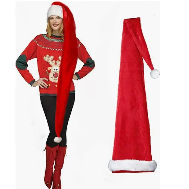 1,5-metrski rdeč podaljšan božični klobuk za odrasle, božični okraski, dolg, super dolg božični klobuk