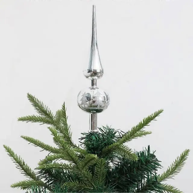 1 kos vrha za božično drevo, vintage ročno poslikano stekleno sferično okrasje za božično drevo za notranjo pisarno, božično srebro
