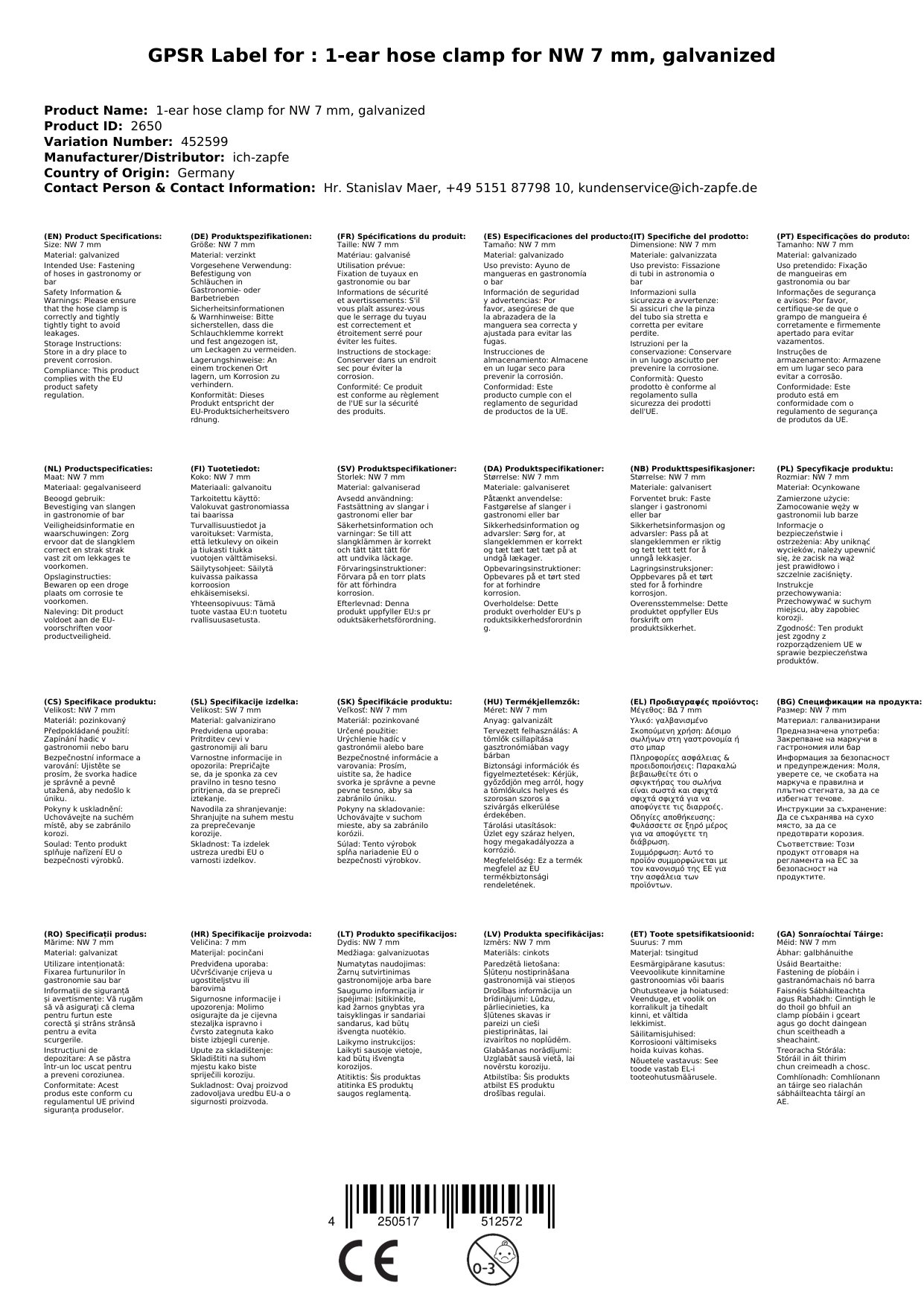 Optimizirajte varnost v svojih gostinskih ali barskih obratih z robustno in zanesljivo 1-ušno cevi spono za notranji premer 7 mm, cinkovano. Ta cevi spona zagotavlja varno in trdno povezavo vaših cevi, da se lahko osredotočite na bistveno - vrhunsko storitev in zadovoljne goste. Zahvaljujoč cinkovanju in trdni konstrukciji je idealna za profesionalne aplikacije, kjer je varnost na prvem mestu.