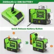 Li-ionsko baterijo je mogoče hitro sprostiti, namestitev pa je zelo enostavna za uporabo. Li-ionsko baterijo je mogoče polniti ločeno, štirje indikatorji napajanja na bateriji pa omogočajo uporabnikom, da poznajo stanje polnjenja. Ko odstranite baterijo, lahko laserski nivo s križnimi črtami uporabite na delovišču, tako da ga neposredno priključite. S polnilnim priključkom Type-C lahko laserski nivo polnite tudi s telefonom, prenosnikom, power bankom, avtomobilskim polnilnikom itd.