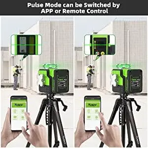 Pri povezavi s Huepar APP lahko pulzni način vklopite/izklopite prek APP. Impulzni način razširi delovno območje do 200 Ft v svetlejših delovnih pogojih, če uporabljate z laserskim sprejemnikom Huepar Line. Združljiv je samo z laserskim detektorjem Huepar LR-6RG / LR-5RG. Opomba: Če uporabljate s sprejemnikom, naj bo pulzni način vklopljen.