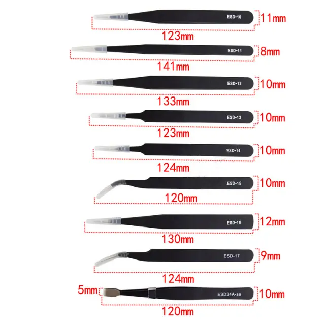 Naše profesionalne industrijske elektronske pincete se lahko uporabljajo za obrt, varjenje, rezljanje papirja, vezenje, oblikovanje, popravilo mobilnih telefonov, popravilo ur, izdelavo nakita, delo v laboratoriju, popravilo elektronike in druga natančna dela.