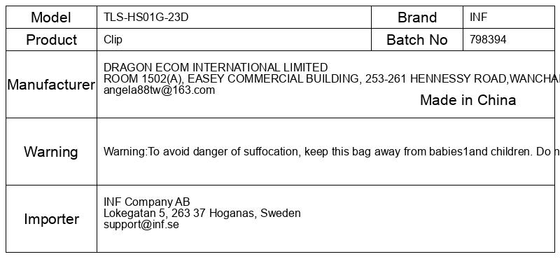 Opozorilo: Da bi se izognili nevarnosti zadušitve, vrečko hranite izven dosega dojenčkov in otrok. Vrečke ne uporabljajte v otroških posteljicah, vozičkih za spanje ali igralih. Ta vreča ni igrača.