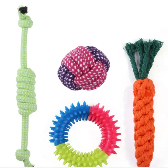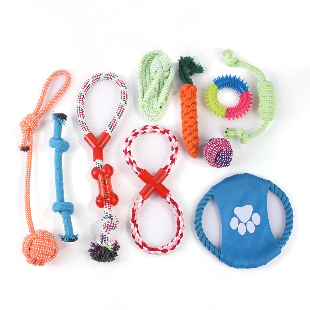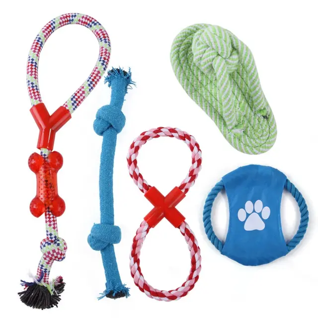 Zabavna interaktivna igra: Ta 10-delni komplet ponuja različne interaktivne igrače, ki bodo vašega psa zabavale ure in ure. Od vlečenja vrvi do prinašanja, te igrače so kot nalašč za povezovanje z vašim hišnim ljubljenčkom in mu zagotavljajo prepotrebno vadbo. Različne oblike in teksture spodbujajo pasje čute in spodbujajo aktivno igro, preprečujejo dolgčas in destruktivno vedenje. Te igrače so idealne za pse vseh starosti in pasem, saj zagotavljajo zabaven in privlačen način, da ostanejo aktivni in zdravi. Uporabite jih za usposabljanje, nagrajevanje dobrega vedenja ali preprosto preživljanje kakovostnega časa s svojim kosmatim spremljevalcem. Komplet vključuje vrsto igrač, kot so vrvi, vozli in žoge, kar zagotavlja, da se bo našlo nekaj za vsakega psa. Odlične so tudi za gospodinjstva z več psi, saj omogočajo, da se več psov igra skupaj in druži.