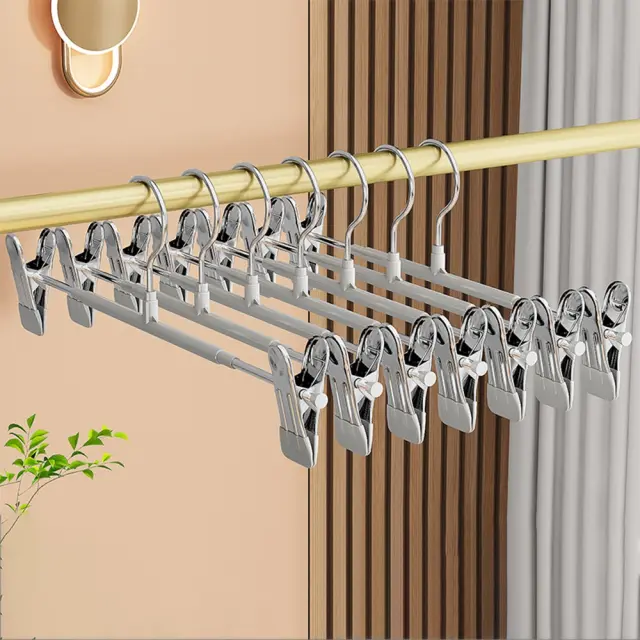 10-Delni Komplet Nedrsečih Obešalnikov za Hlače z Nastavljivimi Sponkami Grey