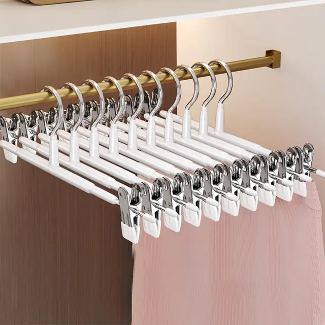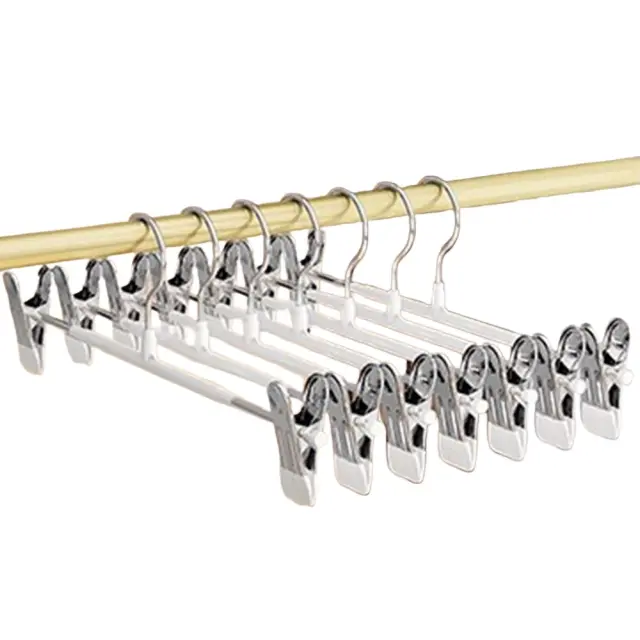 10-Delni Komplet Nedrsečih Obešalnikov za Hlače z Nastavljivimi Sponkami White