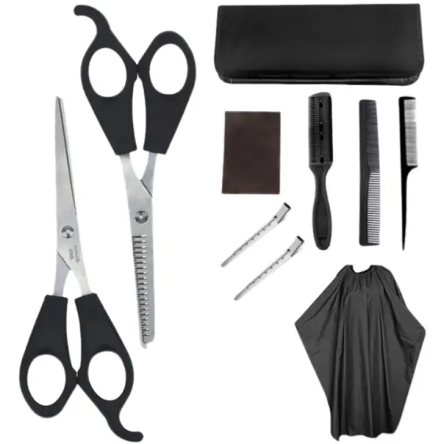 Orodja profesionalne kakovosti: Ta komplet vključuje profesionalne škarje za striženje las, škarje za redčenje las in glavnik za oblikovanje las, vse je zasnovano za natančno striženje in oblikovanje. Ostra rezila in ergonomski ročaji zagotavljajo odličen nadzor in udobje, kar olajša doseganje rezultatov, vrednih salona, doma.