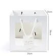 Uporaba v različnih scenarijih: Te vrečke za darila niso primerne samo za osebno obdarovanje, ampak so popolne tudi za maloprodajne razstave, darila za zabave in promocijske dogodke. Zaradi svoje kvadratne oblike in elegantnega dizajna so vsestranska izbira za različna okolja, od butikov do sejmov obrti. Robustna konstrukcija zagotavlja, da vrečke prenesejo težo različnih predmetov, medtem ko ročaj omogoča enostavno prenašanje. Uporabite jih za cvetje, maloprodajne izdelke ali posebna darila za zabave. Konstrukcija PP+papirja naredi vrečke za darila lahke, vendar lahko prenesejo precejšnje predmete.