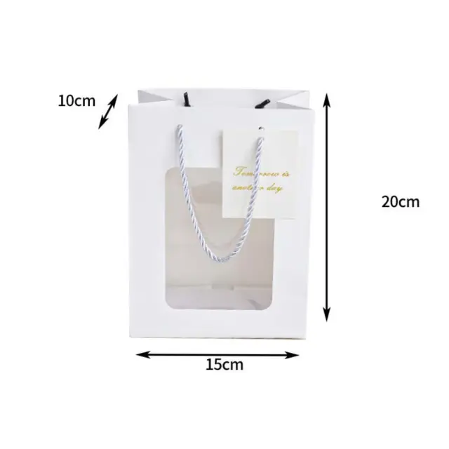 Eleganten način predstavitve: Izboljšajte svoje izkušnje ob podarjanju s temi prefinjenimi belimi vrečkami za darila. Čista, bela barva izžareva občutek prefinjenosti, zaradi česar vaša darila izstopajo na vsakem dogodku. Pravokotna oblika zagotavlja klasičen in vsestranski videz, primeren za široko paleto daril. Prozorno okence ponuja vpogled v darilo v notranjosti, kar dodaja element pričakovanja in navdušenja. Idealne za rojstne dneve, poroke, praznike in poslovne dogodke, te vrečke dvignejo celotno predstavitev vaših daril, kar kaže na premišljenost in skrb.