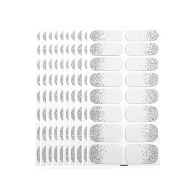 10 Listov Nalepk za Nohte z Pilico - Enobarvne Bleščeče Nalepke za Nohte White