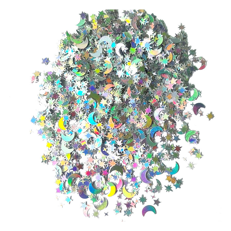 Bleščeč vizualni učinek: Ti lasersko srebrni konfeti dodajo pridih glamurja in iskric vsaki priložnosti. Odsevna površina lepo lovi svetlobo in ustvarja bleščeč učinek, ki polepša dekoracije in ročne izdelke.