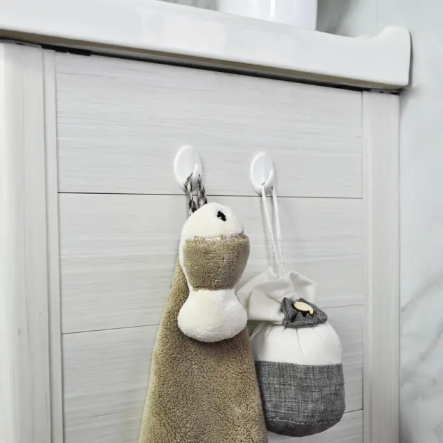 Močan oprijem: Ti kavlji imajo močno lepljivo podlago, ki zagotavlja varno pritrditev na različne površine. Pred nanosom se prepričajte, da je površina gladka in čista.