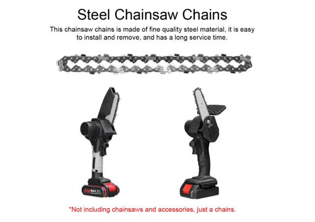 Univerzalna združljivost: Ta veriga je zasnovana tako, da ustreza širokemu naboru modelov motornih žag, zato je združljiva z različnimi znamkami in vrstami 4-palčnih motornih žag. Za združljivost preverite specifikacije vaše motorne žage.