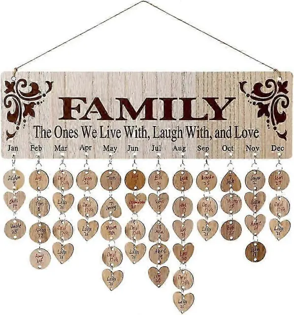 100 KOSOV lesenega družinskega koledarja, DIY koledar za rojstni dan, viseči grafikon, ročno izdelani okraski za rojstne dneve