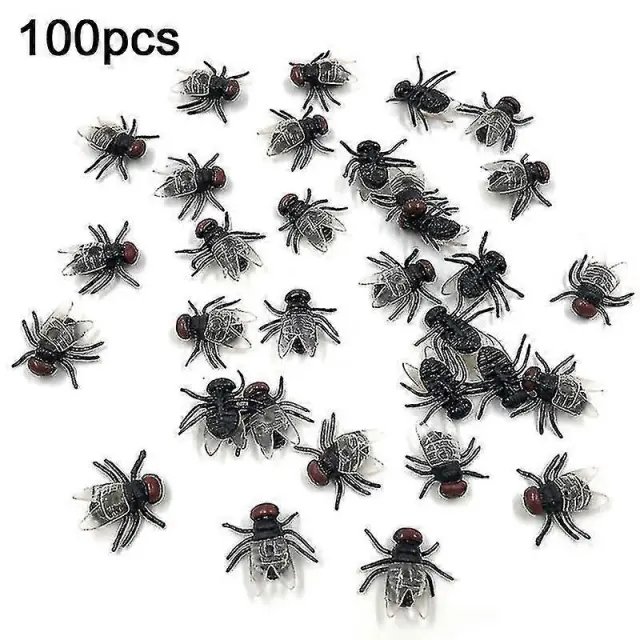 100 kosov ponarejenih muh, plastičnih simuliranih žuželk, muh, žuželk, šala, igrače, potegavščina, pripomočki za noč čarovnic, darila za z