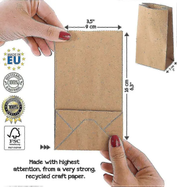 100 kosov rjavih kraft papirnatih vrečk za izdelavo, zavijanje daril in okolju prijazno pakiranje