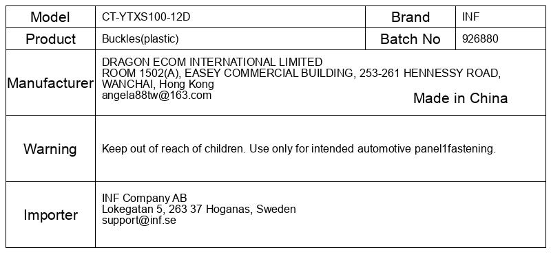 Varno in zanesljivo prileganje: Te sponke za obloge vrat avtomobila so zasnovane tako, da zagotavljajo varno in zanesljivo prileganje, s čimer zagotovite, da notranja obloga vašega avtomobila ostane trdno na svojem mestu. Učinkovito preprečujejo ropotanje, vibracije in zrahljane plošče ter tako prispevajo k tišji in prijetnejši vožnji.