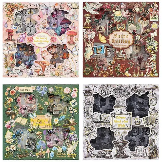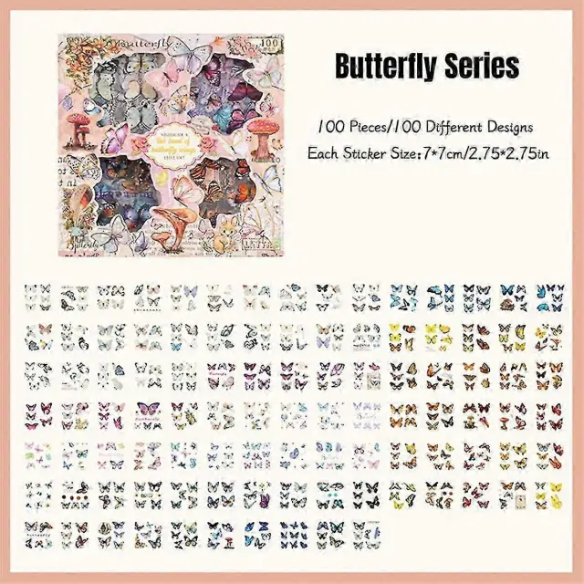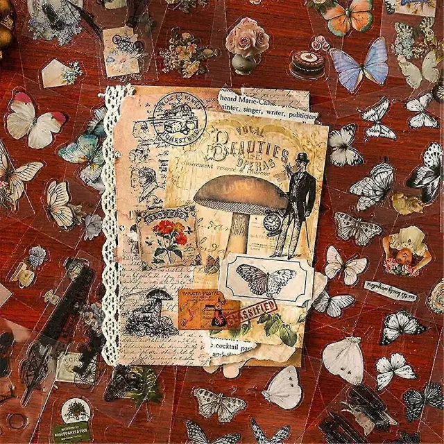 100 listov vintage metulj, rastlina, cvet, nalepke za beležke za neželene časopise, metulj