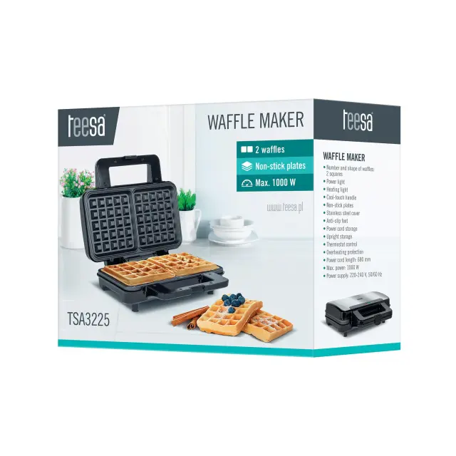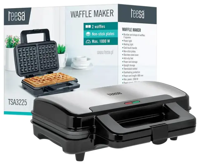 Obiskali so vas nenapovedani gostje ali pa želite razveseliti sebe in svoje najdražje? Sedaj se lahko odpoveste kupljenim tortam in sami hitro in enostavno pripravite okusno sladico. To je mogoče zahvaljujoč pekaču za vaflje Teesa. Naprava vam omogoča pripravo dveh vafljev hkrati, zahvaljujoč moči 1000 W pa se segreje kot bi mignil – to pomeni, da boste zelo hitro lahko pripravili veliko količino te priljubljene poslastice.