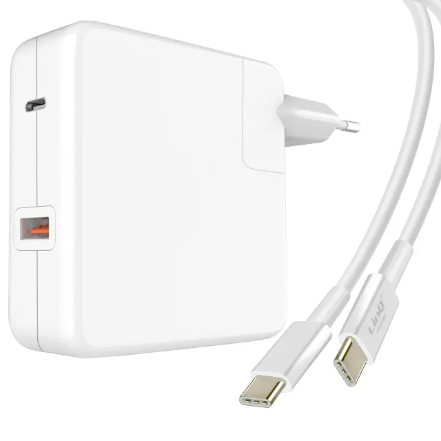 LinQ 180W omrežni polnilec za prenosnik. Stenski adapter z enim USB-C prikljuckom z Power Delivery in enim USB prikljuckom. Stenski polnilnik, ki zagotavlja varno polnjenje 2 naprav hkrati. Napajalnik z odstranljivim AC vticem.