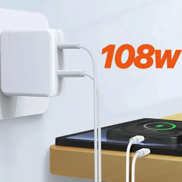 108 W omrežni polnilnik 2x USB-C prikljucki Power Delivery USB, LinQ - bel