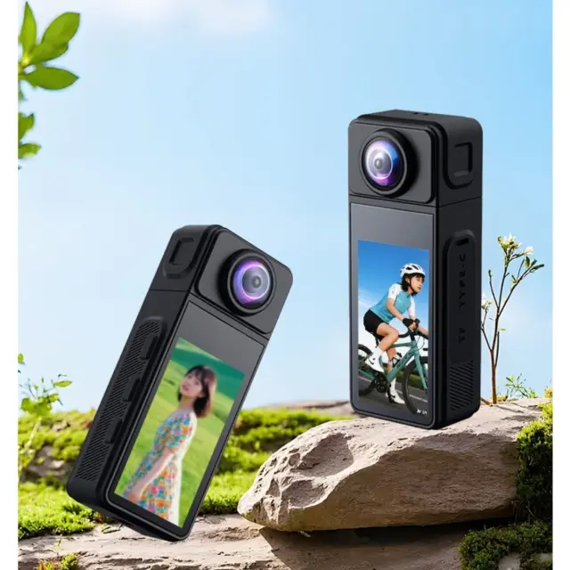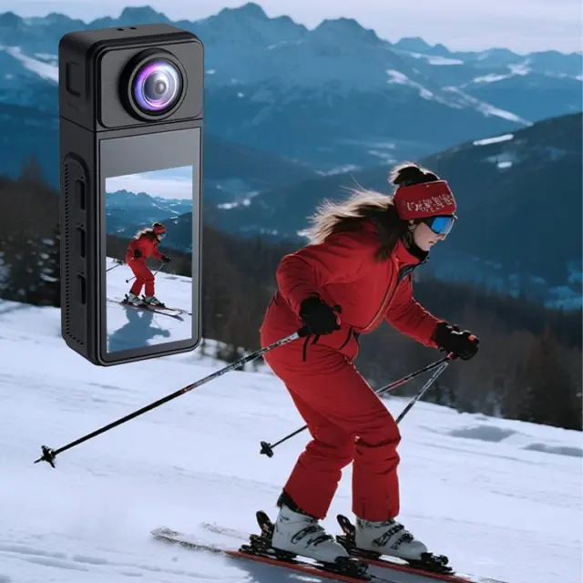 Vsestranska perspektiva: Odklenite ustvarjalne kote z 270° rotacijsko lečo. Ta funkcija omogoča vsestranske perspektive snemanja, kar vam omogoča zajemanje edinstvenih in dinamičnih posnetkov z različnih gledišč. Ne glede na to, ali snemate trike s skejtbordom, dokumentirate pohodništvo ali preprosto snemate vsakdanje življenje, nastavljiva leča zagotavlja, da boste vedno dobili popoln okvir. Kombinacija rotacijske leče in magnetnega nosilca ponuja neskončne možnosti za zajemanje visokokakovostnega videa, z izbirnimi ločljivostmi 4K, 2K in 1080P. Elektronska stabilizacija slike zagotavlja gladko video sliko tudi med hitrimi gibi.