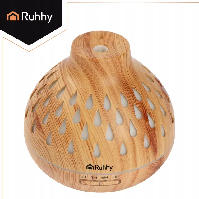 Aroma difuzor Puri Ruhhy je kombinacija vlažilnika zraka in aromaterapevtske naprave, ki v trenutku ustvari sproščujoče vzdušje doma. Ultrazvočna tehnologija proizvaja fino, hladno meglico, prepojeno z eteričnimi olji, velik 400 ml rezervoar pa zagotavlja do 10 ur delovanja. Tiho delovanje (36 dB), funkcija samodejnega izklopa, barvita LED osvetlitev in časovnik ga naredijo idealen dodatek za spalnico, dnevno sobo, pisarno ali spa. Svetlo zrnat les se odlično poda k moderni notranjosti.