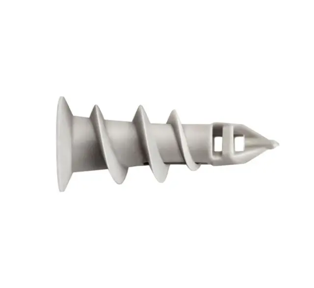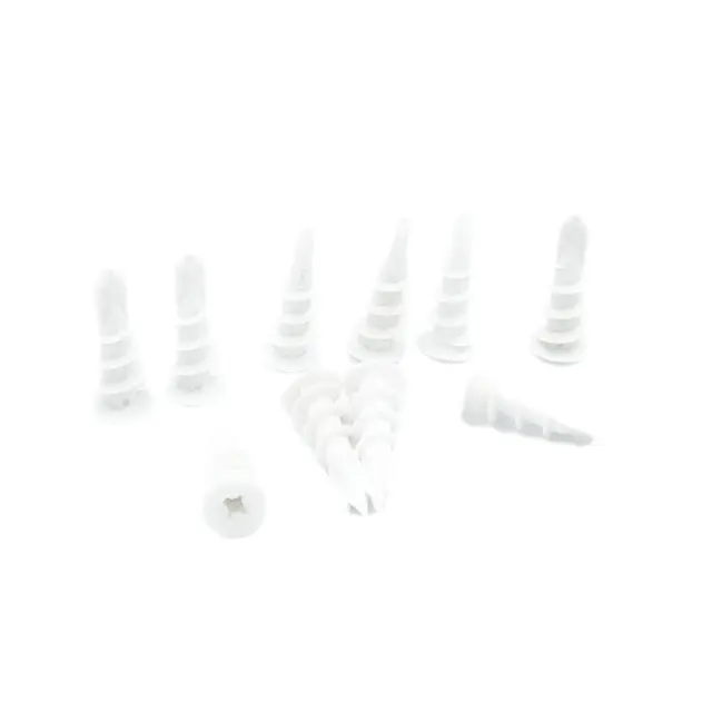 PVC samovrezni vložek za mavčne plošče POLŽ z vijakom je inovativna rešitev, ki vam omogoča enostavno in hitro montažo suhomontažnih plošč na lesene podlage. Ta visokokakovostni izdelek je zasnovan tako, da zagotavlja trdno in varno pritrditev plošč, hkrati pa omogoča tudi enostavno demontažo, če je potrebno.
