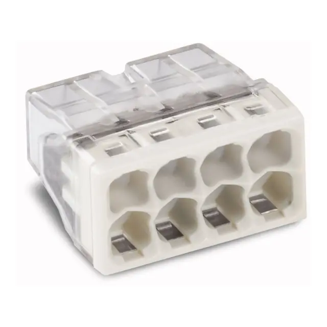 Konektor serije 2273 COMPACT PUSH WIRE je namenjen za razvodne omarice, ki so približno 50 % manjše od originalne serije 273. To prihrani veliko prostora za električne instalacije. Posamezno kombinirani prerezi priključkov od 0,5 do 2,5 mm², nazivni tok do 24 A in jasna, edinstvena barvna koda za hiter dostop vam zagotavljajo popolne pogoje za namestitev. Prozorno ohišje omogoča vizualni pregled za pravilno ožičenje. Če želite preveriti, ali so bili vodniki pravilno odstranjeni, lahko uporabite odprta vrata in tako zagotovite zaščito pred nenamernim dotikom.