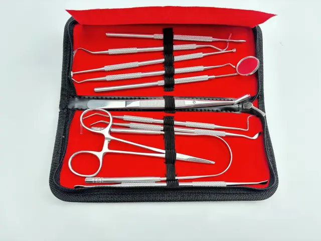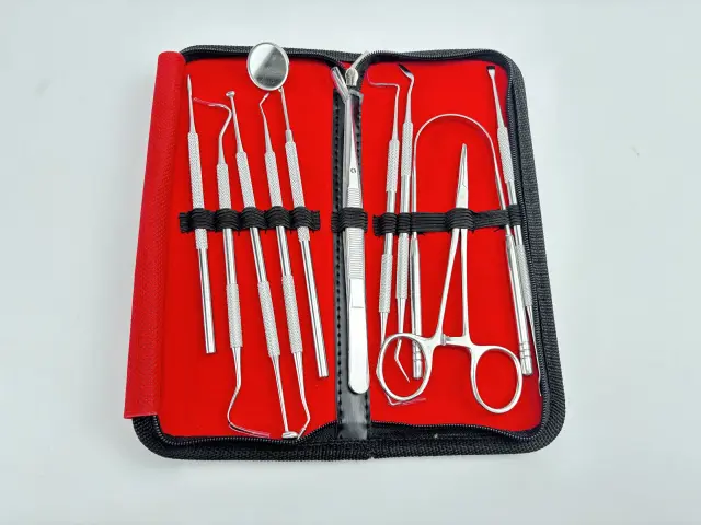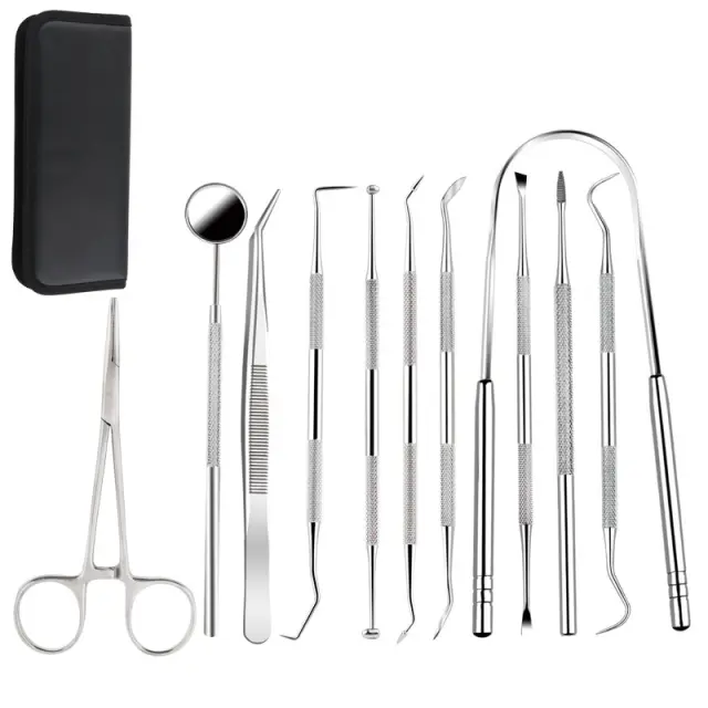 Obsežen 11-delni komplet: Ta obsežen komplet vključuje vse, kar potrebujete za temeljit ustni pregled in čiščenje, vključno z zobnim ogledalom, sondami, strgalom za zobni kamen in še več, zaradi česar je primeren za osebno in profesionalno uporabo.