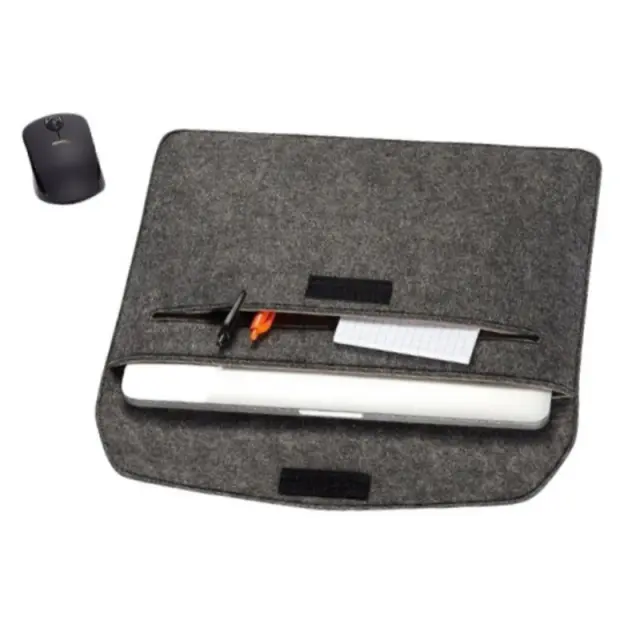 Enostaven za vzdrževanje: filc je naraven material, ki odbija umazanijo, zato je ta rokav enostaven za vzdrževanje. Preprosto otresite morebitni prah ali umazanijo ali pa z vlažno krpo obrišite morebitna razlitja ali madeže. Polsten material se tudi hitro suši, kar zagotavlja, da je vaš rokav vedno pripravljen za uporabo.
