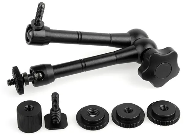 Univerzalna združljivost: Ta zgibna roka, opremljena z 1/4-palčnim vijačnim vmesnikom, je univerzalno združljiva s široko paleto fotoaparatov, videokamer, LED-lučk in drugih fotografskih dodatkov. Brezhibno se integrira v vašo obstoječo namestitev.