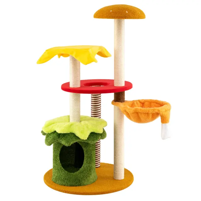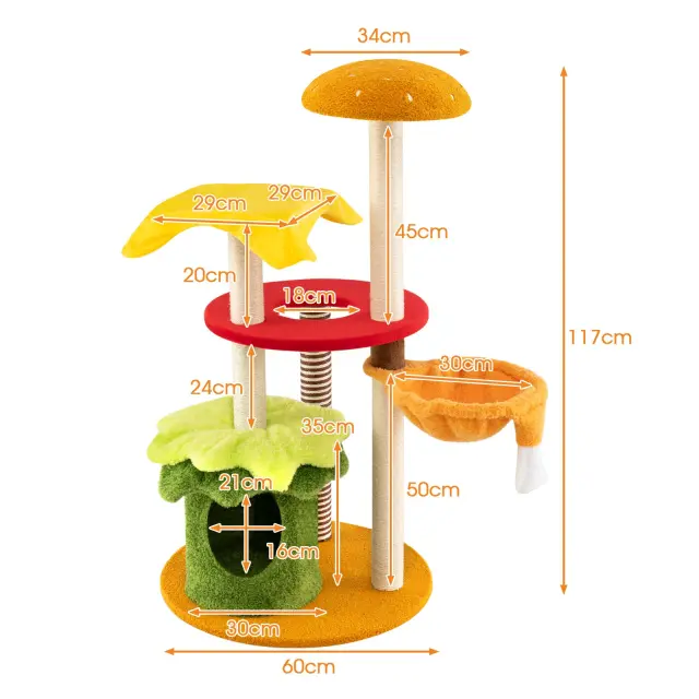 117 cm mačje drevo večnivojski plezalni stolp z visečo košaro oblazinjen sedež sisalove praskalne deske praskalnik oranžna