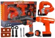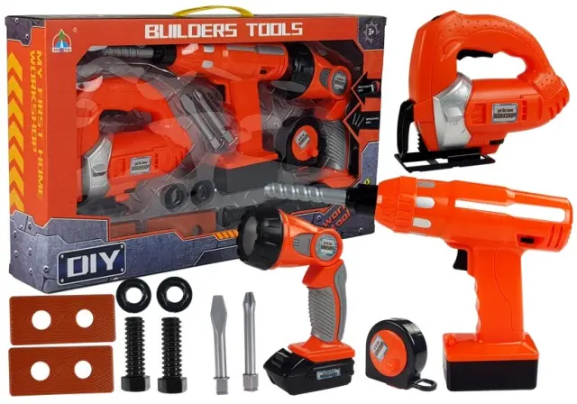Orodja z baterijskim napajanjem mu bodo prinesla veliko zabave. Za težko dostopna mesta bo uporabljena svetilka, ki sveti z močno svetlobo in ima nastavljiv vpadni kot. Vrtalnik deluje kot pravi vrtalnik, ima možnosti za privijanje in odvijanje, v kompletu pa so 3 svedri, od zdaj se mu ne bo upiral noben vijak. Vbodna žaga je še eno orodje na baterije. Ko pritisnete gumb na ročaju orodja, bo vaš malček lahko začel delati, listi vbodne žage se bodo začeli premikati in jih bo spremljal zvok kot pravi izrez. Popolnoma oblikovano orodje ustreza majhnim rokam našega malega oboževalca, kar olajša vzdrževanje in izvajanje vseh vrst nalog.