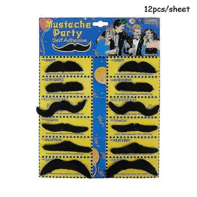 12 kosov smešne nalepke z lažnimi brki, okras za piratsko zabavo, noč čarovnic, cosplay, zabava z brki, lažna brada, brki, otroci, odrasli, črna