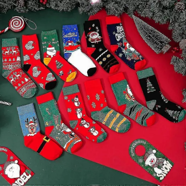 12 parov božičnih nogavic, adventni koledar 2024, ženske, ljubke nogavice za odrasle, ženske smešne nogavice, božični koledar, božične nogavi