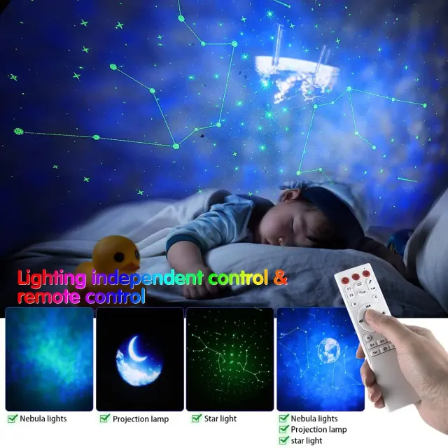 Še posebej s projekcijskimi filmi 12 ozvezdij in 5 planetov, kot nalašč za okrasitev vaše spalnice, dnevne sobe ali festivalskih zabav in poživitev vašega razpoloženja. Lahko tudi spodbuja radovednost, domišljijo, ustvarjalnost.