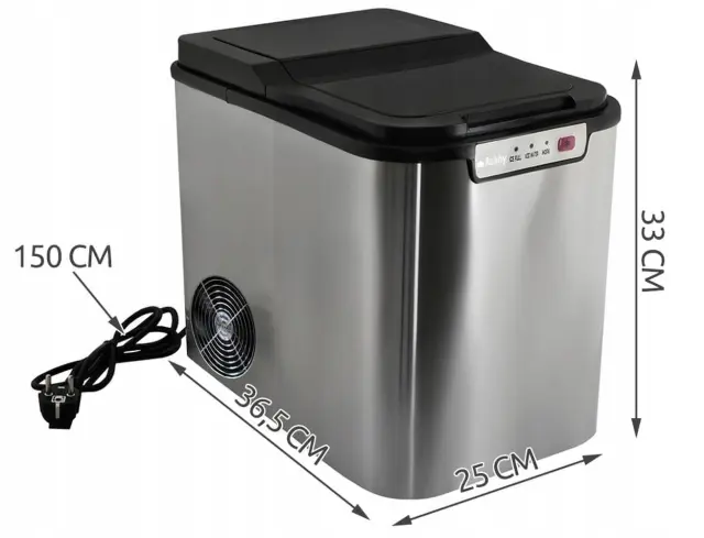Moč in Učinkovitost: Z močjo 120W ta ledomat hitro in učinkovito izdeluje ledene kocke, kar omogoča stalno zalogo ledu za vse vaše potrebe.