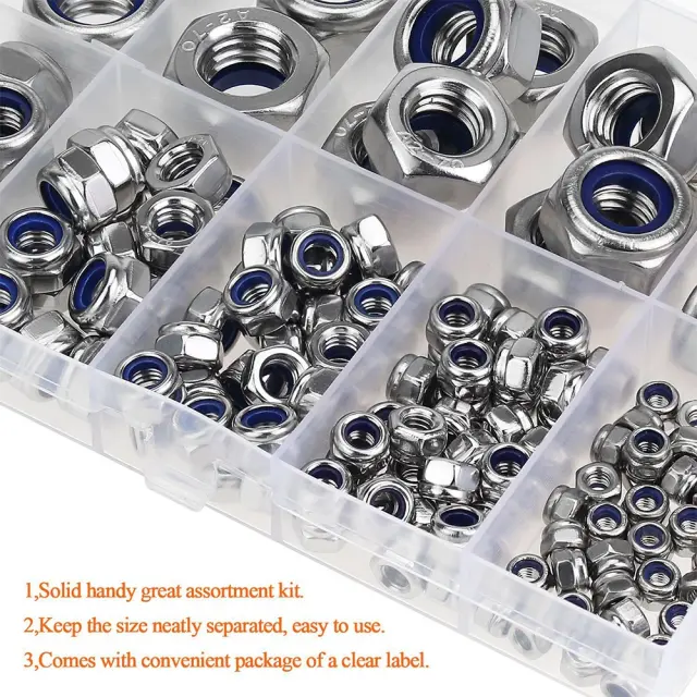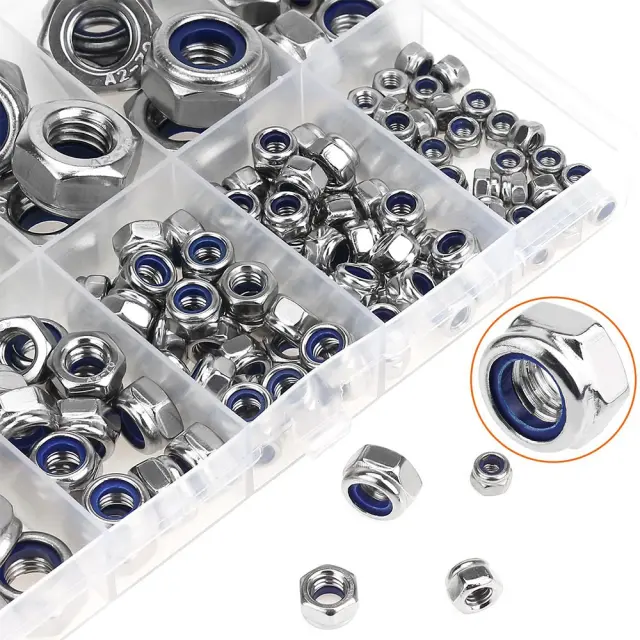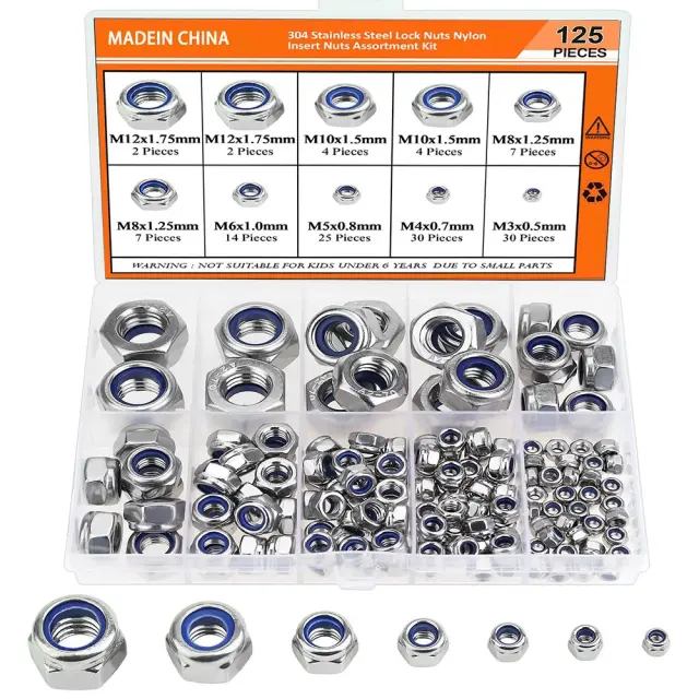 125 kosov Komplet šestrobih samozaporilnih matic iz nerjavečega jekla