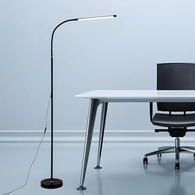 Osvetlite svojo notranjost s funkcionalno in elegantno rešitvijo! Talna svetilka s prilagodljivim 360° vratom zagotavlja popolno svetlobo za branje, delo in sprostitev.