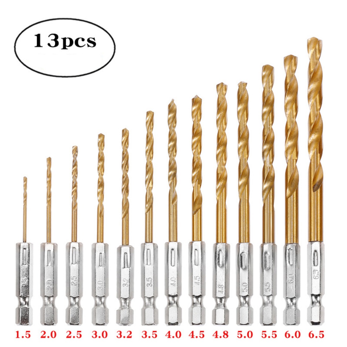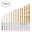 Vsestranska uporaba pri vrtanju: Prosimo, upoštevajte: to niso originalni deli. Ta 13-delni komplet svedrov s šestrobim steblom je zasnovan za širok spekter vrtalnih aplikacij. Konstrukcija iz hitroreznega jekla zagotavlja učinkovito vrtanje v les, plastiko in mehke kovine. Titanova prevleka poveča trdoto svedra in zmanjša trenje, kar vodi do čistejšega in hitrejšega vrtanja. Idealen za profesionalne in DIY projekte, ta komplet zagotavlja potrebna orodja za ustvarjanje natančnih lukenj v različnih materialih.