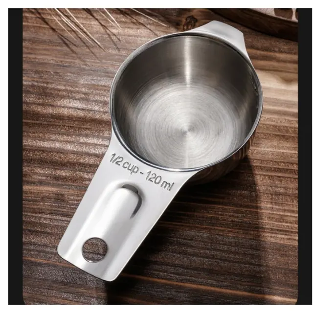 Natančne meritve: S tem 14-delnim kompletom za merjenje vsakič dosežete popolne rezultate. Vključuje sedem skodelic in sedem žlic, vsak kos je jasno označen z natančnimi meritvami v metričnih in imperialnih enotah. Ta komplet je idealen za peke, kuharje in vse, ki potrebujejo natančne meritve za recepte. Zagotovite, da bodo vaše pekovske in kuharske stvaritve vedno popolne s tem celovitim kompletom merilnih pripomočkov. Priložena skala dodatno poveča natančnost, saj ponuja priročne pretvorbe za različne enote.