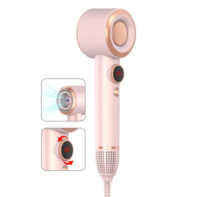1400W Visokohitrostni sušilnik za lase z digitalnim zaslonom in koncentratorjem Pink