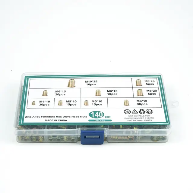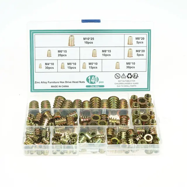 140PCS Komplet T-matic iz cinkove zlitine - Trapezni navojni vložki za obdelavo lesa