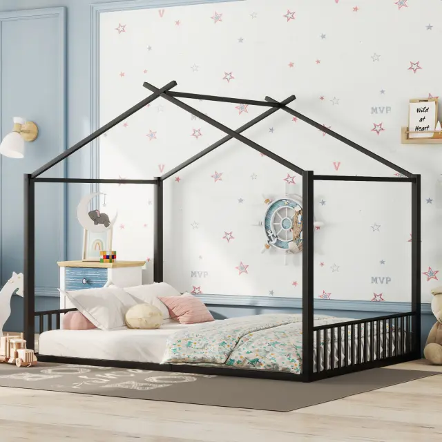 140x200cm Ploska postelja, Postelja z železnim okvirjem, Otroška postelja, Hišna ograja, Črna